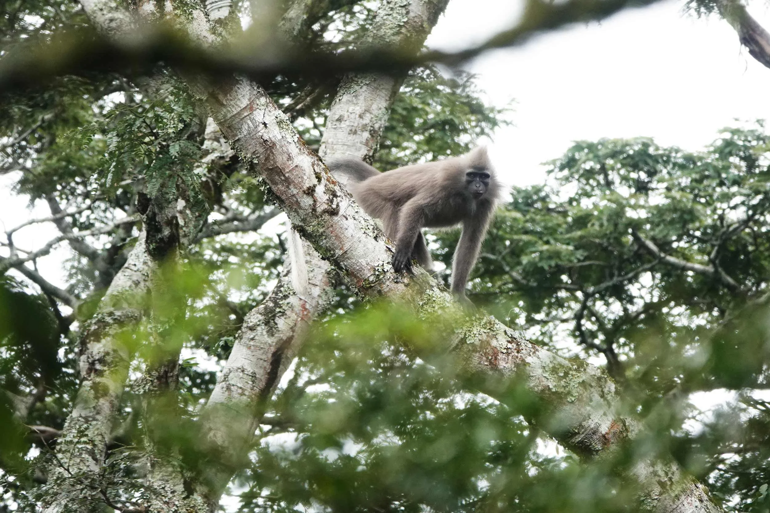 Eventually, our patience paid off. We found another group of Kipunjis across a forested valley. This time, everyone had a great view. The dominant male kept an eye on us while the others fed calmly, allowing us ample time for observation and photos.